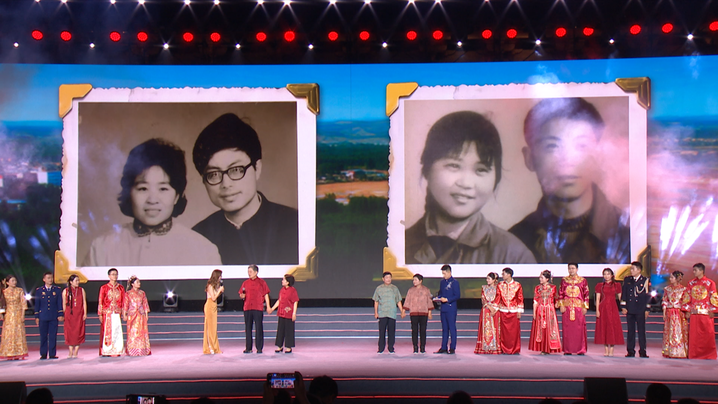 “雙城婚典?古今禮贊”環節尤為感人,8對來自鹽城與無錫的新人在現場舉辦集體婚禮,兩對上世紀六七十年代曾在東臺支援黃海國家森林公園建設的金婚夫婦,分享了當年從鹽堿地里生長出來的愛情故事,講述了從相知相愛到相濡以沫的愛情保鮮秘訣,并向新人贈送東臺發繡與無錫紅豆金箔畫,傳遞彼此美好祝愿。由此,無錫和鹽城這兩座依山與傍海的城市結成文明實踐伙伴,助推鹽錫“一家親”變成協作“一盤棋”,打造陣地共建、資源共用、隊伍共育、活動共辦、服務共融、成果共享的跨區域協同發展示范。