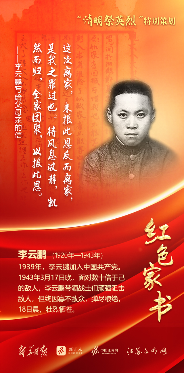 父母親大人大鑒:自兒離家已經年余,記得曾在本年四月間,于泗縣鄭集寄家信一封,不知大人收到否?回音否?如家音回報,可惜我也不能等收了。我已離開此地轉入本省淮陰了,以致家音不能等收,兒異常為念。不知大人身體近來健康否?不知家中生活情形和收成怎樣?更不知當地情形如何?兒在外甚為惦念之。兒在外身體很好,生活也很好,現在的我比從前粗壯高大了,請大人不要為念。兒工作非常忙碌,我之工作精神也非常興奮。此信致家不過慰問而已。因現無一定的地址,兒現在心目中所最掛念者,以我年老悲慈之祖母,兒離家時,祖母曾染重疾,不知大人的病痊愈了否?身體健康否?不知祖母飲食起居怎樣?兒心中非常掛念。希二大人將我之情形講給她聽,以免大人之懸念。這次離家,未報此恩反而離家,是我之罪過也。待風息波靜,凱然而歸,全家團聚,以報此恩。兒現已將“亞光”改為“云鵬”,請父之指教之。現因時間之短促,不能再敘。并祝各位叔父母的身體安康!各位小弟弟好嗎?侄在外甚為掛念。