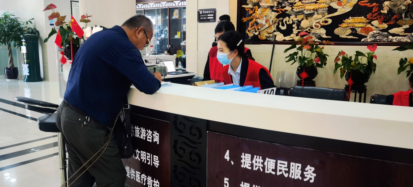 在花果山景區游客中心設置志愿服務站,常年為游客提供服務