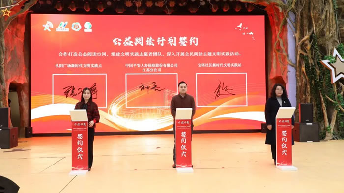活動當天,平安人壽、寶塔社區文明實踐站、弘陽廣場文明實踐點共同簽約了“公益閱讀計劃”,三方將攜手打造公益閱讀空間,組建文明實踐志愿者團隊,深入開展全民閱讀主題活動,推動社區文化建設,進一步弘揚文明新風。