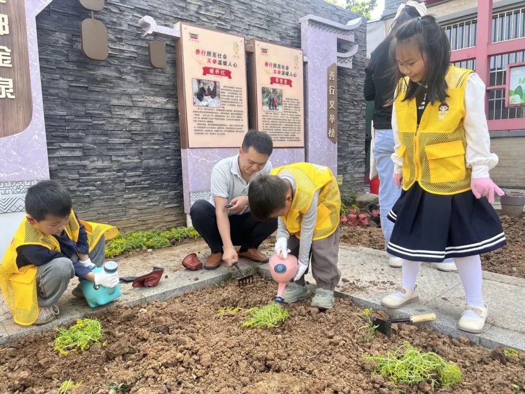 浦口區湯泉街道金泉社區新時代文明實踐站在社區“愛鄰”小廣場開展“一起‘趣’勞動 共建兒童友好花園”六一主題活動。