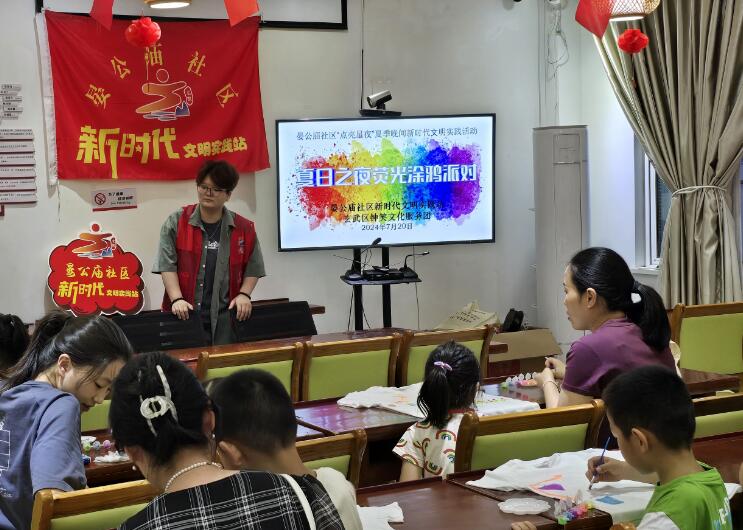 為豐富社區青少年晚間文化活動,7月20日晚,由孝陵衛街道晏公廟社區新時代文明實踐站主辦、玄武區鐘笑文化服務團承辦的“點亮星夜”熒光涂鴉派對主題活動在晏公廟社區活動室開展。