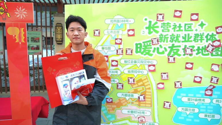 一幅長營社區地圖背景板前,新就業群體、新老居民正攜手完成一場“溫暖接力”。快遞員魏先生在“奔跑足跡卡”上認真畫下最熟悉的送件路線,粘在地圖上:“這條路我每天跑五六趟,每家每戶好像都認識了。”外來租房的李女士在路線旁貼上“感謝便利貼”:“來南京兩年,從辦居住證明到調解鄰里小事,社區一直很貼心!”另一邊,居民劉阿姨也工整寫下:“謝謝總是準時送餐的小哥,也祝所有在南京奮斗的年輕人新年平安!”一卡一貼,奔跑的足跡、奮斗的身影與守望的感謝在此刻交匯,逐漸拼成一幅充滿故事與溫度的“社區暖心圖景”。