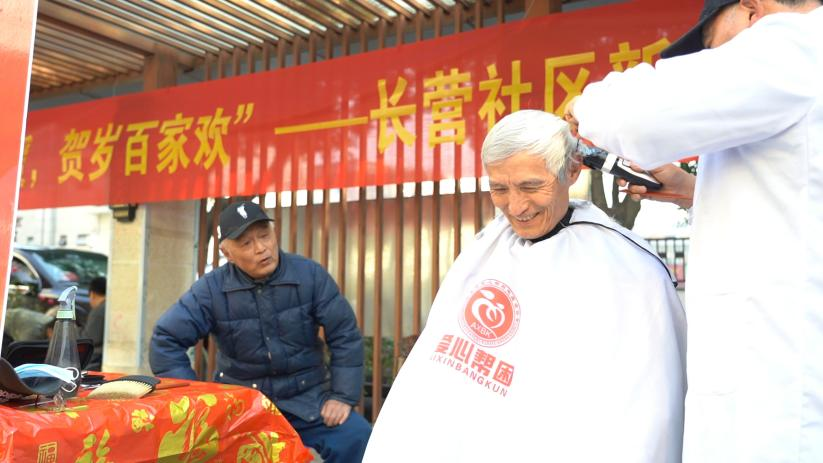 便民服務點前秩序井然、暖意融融。理發師耐心聽取需求,精心修剪發型;磨刀師傅專注打磨,讓刀具重煥鋒利;手機貼膜攤前,居民安靜等候,師傅細致操作,每一處服務都傳遞著社區細致入微的關懷。