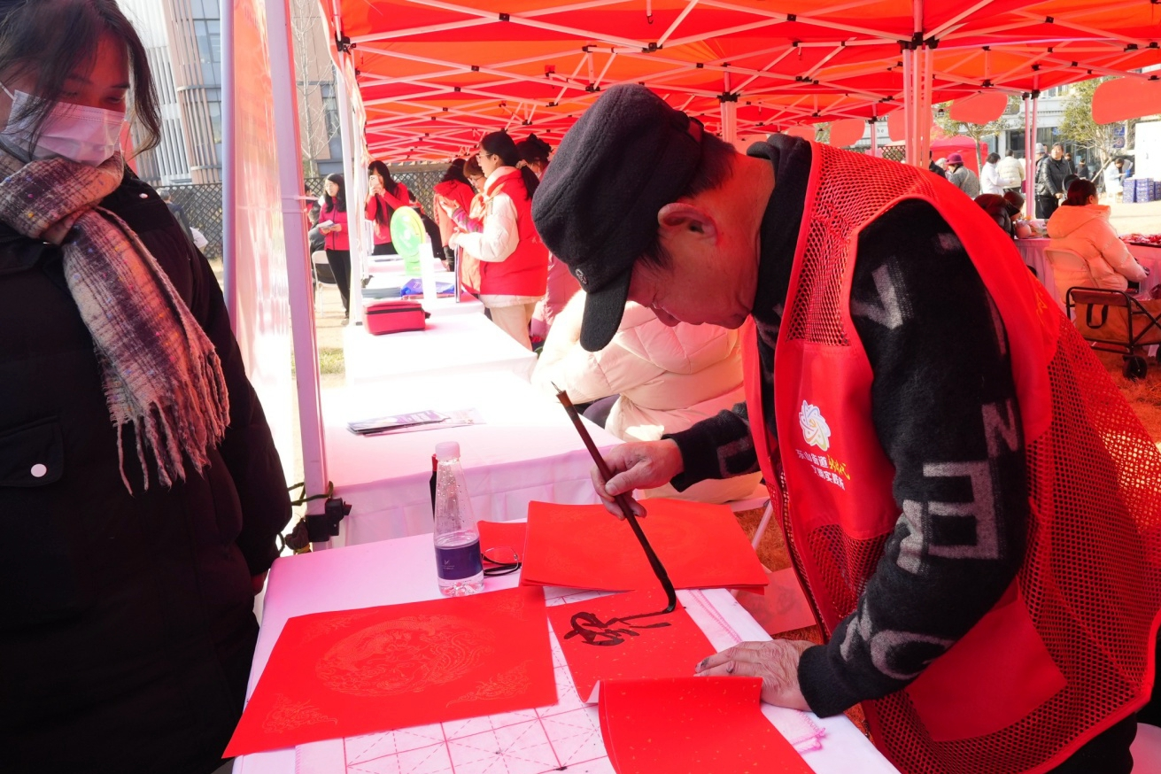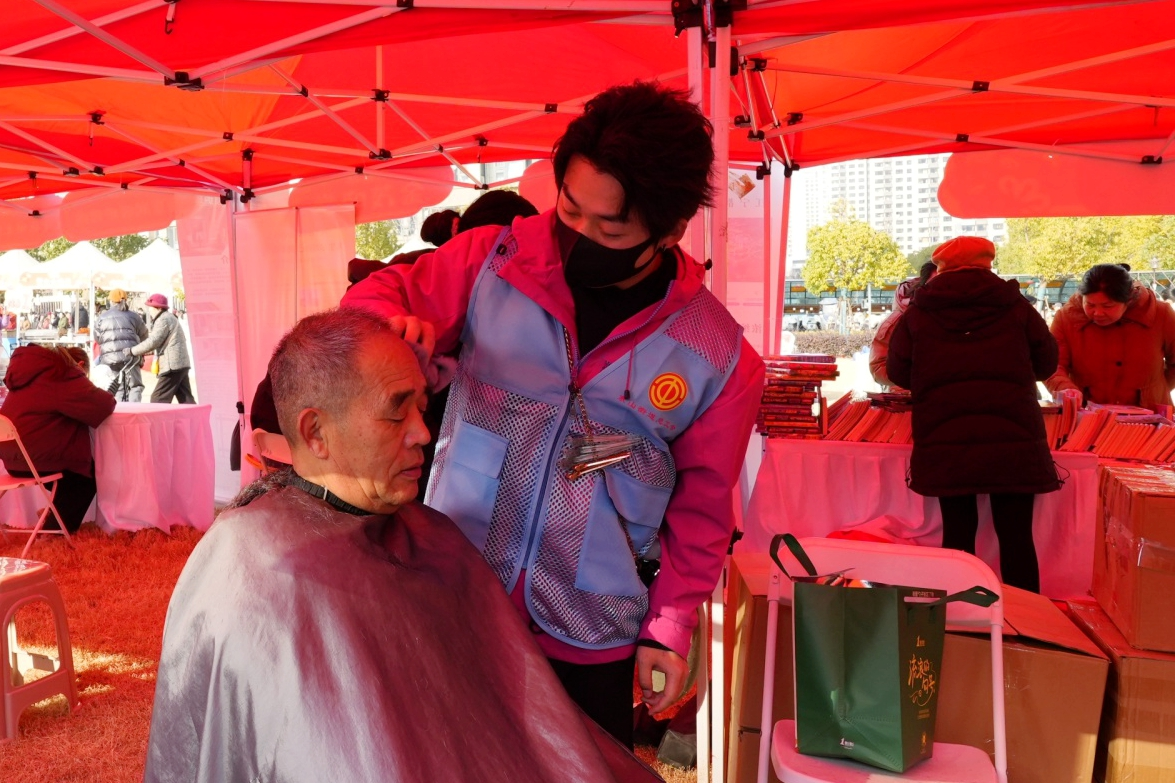 瑞鄰服務便民攤位更是暖意融融。墨香流轉,筆尖送福,書法志愿者將新春祝愿化作一幅幅手寫福字;發(fā)梢輕揚,愛心理發(fā)師為長者修剪出利落的新年發(fā)型;義診臺前,“江小紅”志愿者、疾控專家、家庭醫(yī)生耐心叮囑,守護居民健康。“瑞寧先鋒隊”同步開展反詐宣傳、志愿者招募、法律咨詢等專業(yè)服務,溫暖直抵人心。物業(yè)團隊支起的熱氣攤位飄香四溢,爆米花、烤腸、元宵等茶點免費供應,居民手捧暖食、笑語盈盈。