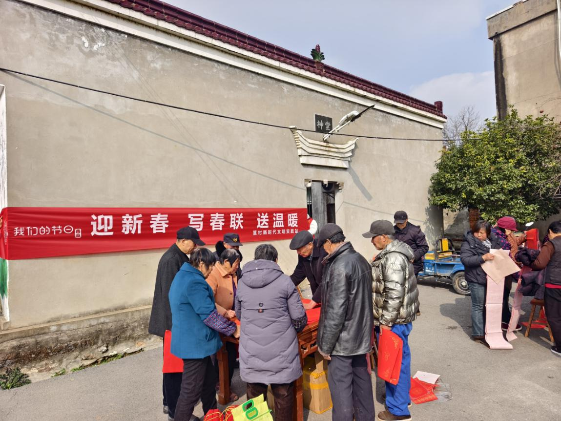 與物資發放同步開展的還有文化惠民活動。笪村新時代文明實踐站組織當地書法家現場書寫春聯和“福”字,為村民送上新春的文化祝福。“這副對聯寓意好,我要帶回家貼在大門上!”“這個‘福’字寫得真有精氣神!”村民們一邊挑選心儀的春聯,一邊感受著漸濃的年味。活動不僅豐富了慰問形式,更傳承了傳統文化,營造了喜慶祥和的節日氛圍。
