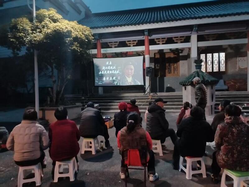 為豐富村民文化生活,弘揚中華傳統美德,近日,南京市高淳區磚墻鎮木樨村新時代文明實踐站在戲樓廣場組織開展戶外電影放映活動,為村民放映經典越劇電影《五女拜壽》。