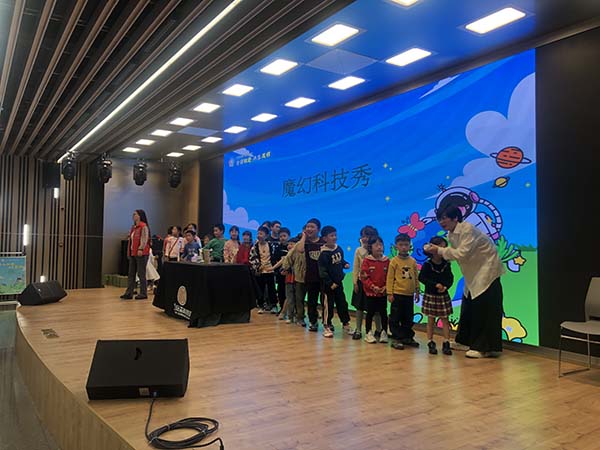 對(duì)孩子們而言,現(xiàn)場最具有吸引力的應(yīng)該是“魔術(shù)秀”環(huán)節(jié)。塑料瓶神秘“消失”、折紙花秒變真花、與桌子曼妙共舞……一幕幕神奇景象引來家長與孩子的陣陣掌聲。魔術(shù)師通過魔術(shù)表演講解科學(xué)原理,為孩子們普及科學(xué)知識(shí),同時(shí)將節(jié)能減排、垃圾分類等環(huán)保知識(shí)融入其中,真正做到“寓教于樂”。