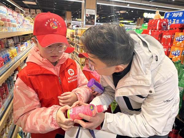 紅領(lǐng)巾志愿者在實(shí)踐場(chǎng)地認(rèn)真核查食品的標(biāo)識(shí)信息,南京江寧正德青少年服務(wù)中心社工示范如何通過標(biāo)簽識(shí)別鮮奶與調(diào)制乳,引導(dǎo)對(duì)比不同食品的營養(yǎng)成分表,解析“反式脂肪酸”“防腐劑”等專業(yè)術(shù)語,孩子們沉浸式體驗(yàn)、零距離見證“舌尖上的安全”。