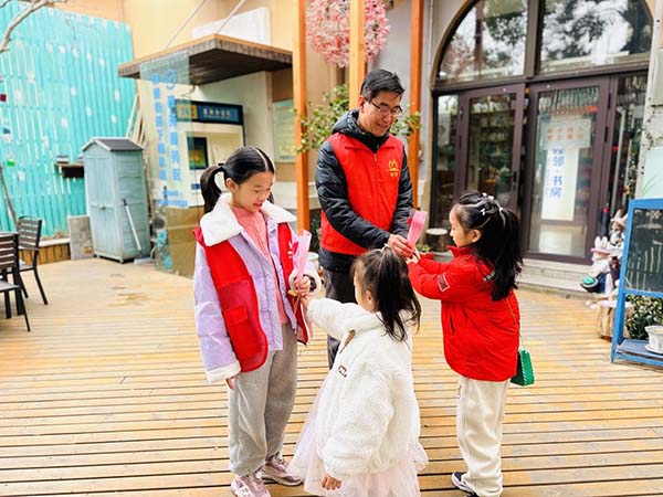 活動(dòng)的最后,孩子們將“感謝鮮花”送給為社區(qū)默默奉獻(xiàn)的小朋友、大朋友們,致敬每一位踐行雷鋒精神的志愿者。一位小朋友說:“我要把鮮花送給書房的志愿者爺爺,爺爺每個(gè)周末都會(huì)在那里義務(wù)為大家服務(wù),總是面帶微笑,讓人感到溫暖。”