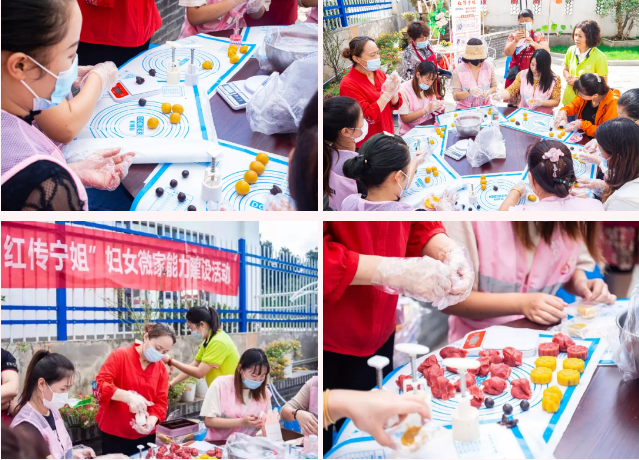 在中秋佳節即將到來之際,永寧街道婦聯在“紅傳寧姐”婦女微家中開展了一場月餅制作技能大比拼活動,轄區月嫂、婦女代表參加了本次活動。在愛心緣社工老師的指導下,將面團搓成餅皮,再把準備好的紅豆沙餡料包在月餅皮里,再次搓圓,最后壓模成型,月餅做好后,大家又在老師的指導下,進行裝袋、封塑,裝盒。通過月餅制作的學習,提高了婦女的創業技能,增強婦女姐妹們的交流,收獲滿滿的節日幸福感。