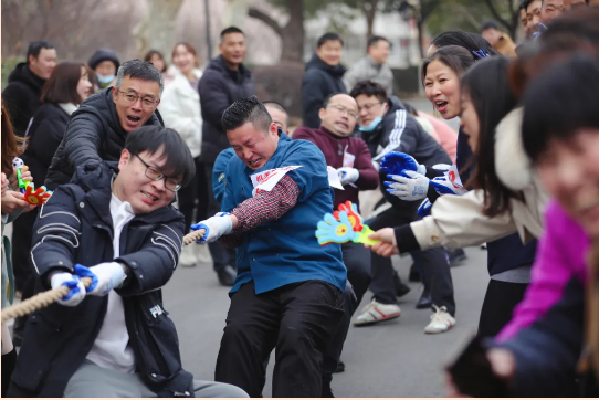 1月14日下午,南京浦口區永寧街道總工會舉辦第五屆“凝心聚力·心手相牽”迎新年拔河比賽火熱開賽,現場人聲鼎沸、熱鬧非凡。