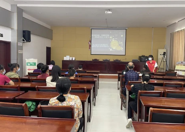 活動伊始,志愿者結合PPT聲情并茂地向參與活動的居民介紹了中秋節的各種習俗,例如團圓飯、賞月、吃月餅,大家相互討論,現場氛圍熱烈。