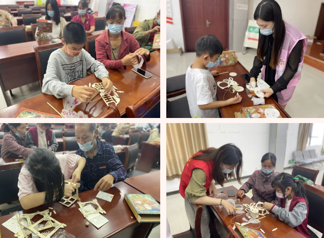 隨后,志愿者分發了制作燈籠的手工材料,面對一應俱全的材料,孩子們興致勃勃地動起手開始制作。孩子們相互探討交流,一步一步地認真做著,通過拼接、裝訂等步驟,最后再裝上電子燈,一盞盞精致的燈籠在能工巧匠的手中點亮,五顏六色的燈籠里寄托了大家的美好愿望。