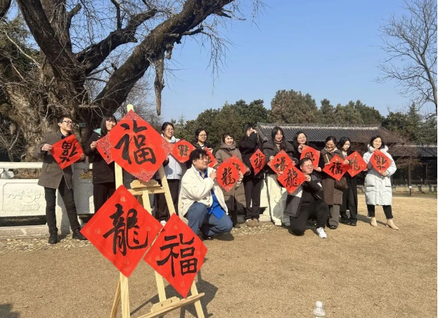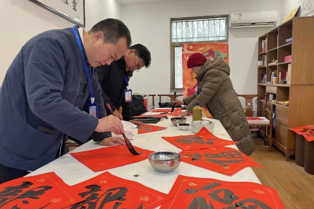 新春納福,最是貼心。為迎接新春佳節(jié),營(yíng)造喜慶祥和的節(jié)氣氣氛,1月27日、28日,南京市浦口區(qū)湯泉街道高華社區(qū)新時(shí)代文明實(shí)踐志愿服務(wù)大隊(duì)會(huì)同熱心企業(yè)在惠濟(jì)寺文化公園組織開(kāi)展了“墨香四溢,接福回家”送祝福活動(dòng)。活動(dòng)中完成的“福”字作品,在惠濟(jì)寺文化公園贈(zèng)送給了提前預(yù)約好的游客手中,為他們的春節(jié)增添一絲暖意。