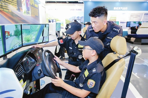 小朋友在警察的輔導(dǎo)下體驗駕駛,學(xué)習(xí)交規(guī)。記者 楊天笑 攝