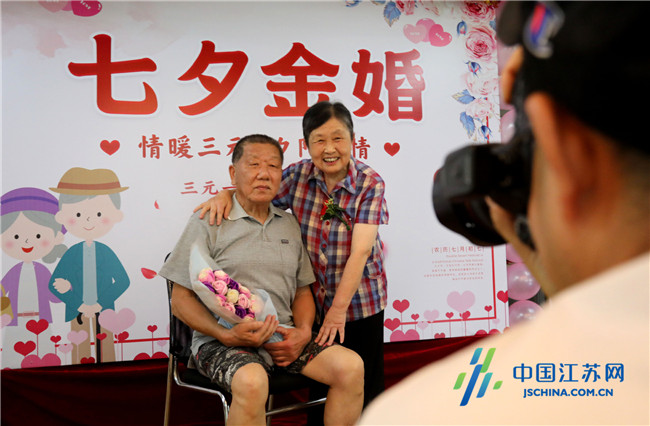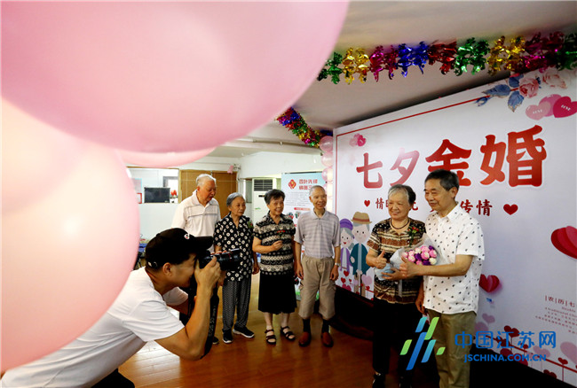 2020年8月20日,蘇州市姑蘇區(qū)金閶街道三元一村社區(qū)邀請(qǐng)社區(qū)20對(duì)結(jié)婚50年以上的夫婦來(lái)拍攝金婚紀(jì)念照,回味甜蜜愛情,樂享幸福生活,迎接即將到來(lái)的七夕節(jié)。 杭興微 攝 視覺江蘇網(wǎng)供圖