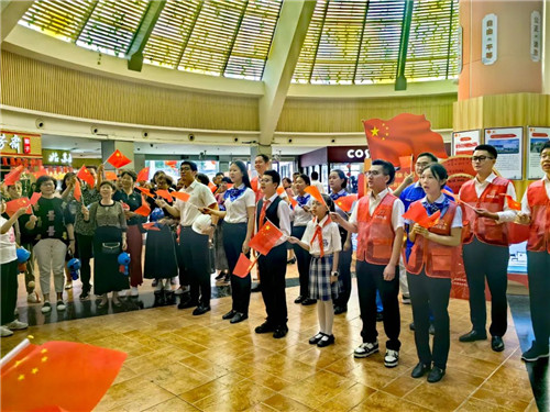國旗在我心中,我與國旗同框。在張家港市樂余鎮新時代文明實踐所,群眾們紛紛與國旗合影,向偉大祖國獻上最真摯的祝福。張家港市金港街道金都社區的黨員干部及群眾代表同唱國歌,和國旗同框打卡,手中揮舞的一面面鮮艷的五星紅旗,承載了濃濃的愛國情!