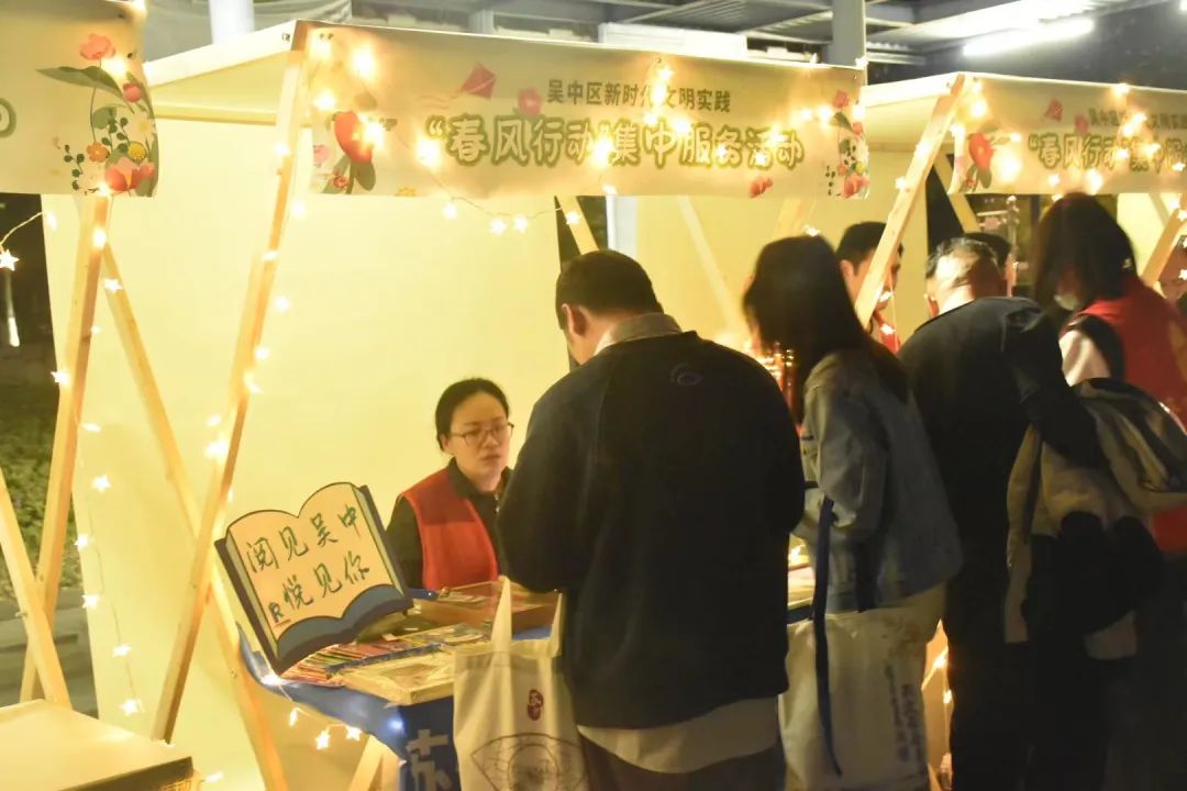 蘇州吳中區(qū)新時代文明實踐中心在五龍橋公園開展“春風行動”集中服務市集活動。活動現(xiàn)場人頭攢動,熱鬧非凡,公益電影放映、中醫(yī)健康義診、濕地知識科普、非遺手工體驗、移風易俗宣傳……沒多久,各個“攤位”就圍滿了前來“趕集”的居民,志愿者們熱情、認真、耐心、細致的服務,既豐富了居民們的晚間生活,也受到了居民們的一致好評。