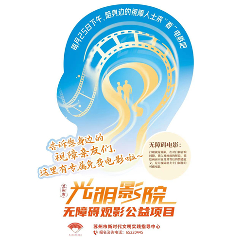 目前,蘇州市工人文化宮金逸影城2號放映廳是蘇州市級“光明影院”的固定放映點,每月25日為市級固定放映日,面向全社會視障人士開展公益放映。參加活動的視障人士需憑殘疾人證可直接入場,陪護親屬也可直接入場陪同觀看。