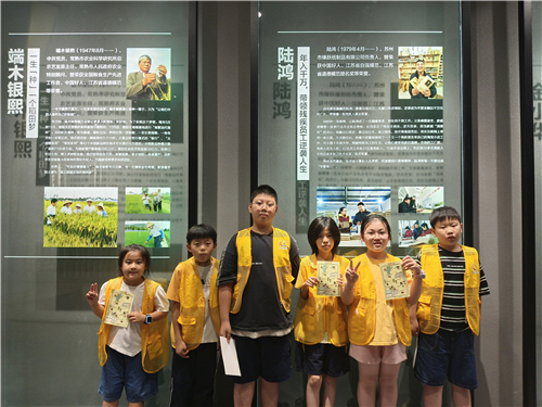 在吳江文明辦的統(tǒng)籌下,除了“扣好人生第一粒扣子”,蘇州公民道德館內(nèi)還開展了“我在公民道德館里追光”等一系列未成年人主題實(shí)踐活動。如吳江高新區(qū)(盛澤鎮(zhèn))新時(shí)代文明實(shí)踐所組織的“追光”之旅,志愿者吳糧鋼老師在活動中給孩子們生動講述了沈志善和潘永祥兩位絲綢界勞模的事跡。