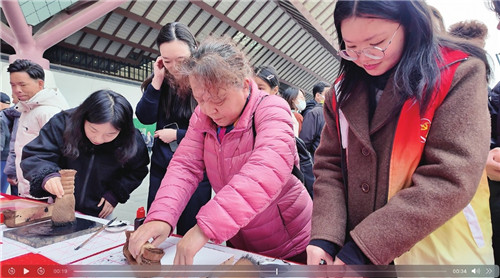 與此同時,糖畫、木版年畫等傳統民俗體驗攤位在北廣場一字排開,同樣吸引了眾多旅客駐足參與。糖畫藝人手法嫻熟,將熔化的糖液勾勒成栩栩如生的小動物;木版年畫雕刻精美、寓意吉祥,盡顯傳統技藝的獨特魅力。現場歡聲笑語此起彼伏,旅客們在忙碌的歸途中,真切地感受到了濃厚的節日氛圍和蘇城的溫暖。