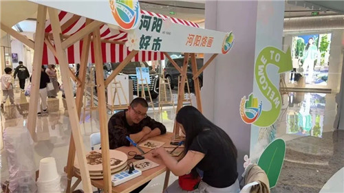 “剛開始用力不均勻,顏色就有深淺,多嘗試幾次就好了。”在非遺代表性傳承人的指導下,市民沉浸式體驗了河陽烙畫的魅力。一幅幅色彩鮮艷、充滿鄉村氣息的農民畫,以獨特的藝術魅力吸引市民的目光。來自連云港贛榆區石橋鎮官莊小學“張聞明鄉村學校少年宮”的學生詩歌、釘線畫展,也引來大家紛紛駐足欣賞。
