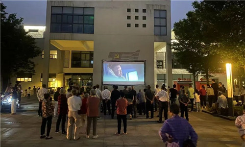 楓橋街道馬浜社區則放映了經典紅色影片《井岡星火》,影片生動講述了毛澤東、朱德等革命先輩在井岡山創建革命根據地的故事,展現了共產黨人堅定的信念和奮斗精神。居民們表示在清涼夏夜能和大家一起觀看電影,不僅十分有意義,還拉近了鄰里距離。
