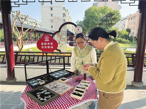 敏銳捕捉到這份向善力量與需求,桂花社區(qū)黨委打造“‘飾’放光彩”手工首飾創(chuàng)作募集項(xiàng)目,在社區(qū)婦聯(lián)帶領(lǐng)下,以傳統(tǒng)宋錦非遺技藝為紐帶,成立“桂香姐妹花鈿絲語(yǔ)手作工坊”,為全職媽媽搭建起技能實(shí)踐與志愿服務(wù)相輔相成的平臺(tái)。