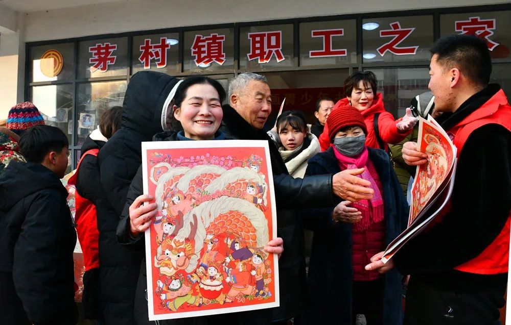 在房村鎮(zhèn),村民齊聚一堂共賀新春,看“百姓村晚”、領(lǐng)春聯(lián),讓年味更濃。