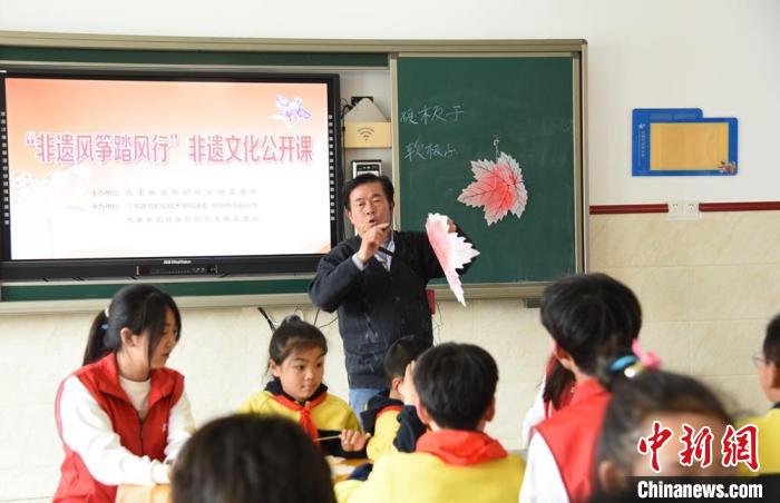 公開課上,非遺傳承人教學生們制作風箏。朱志庚 攝