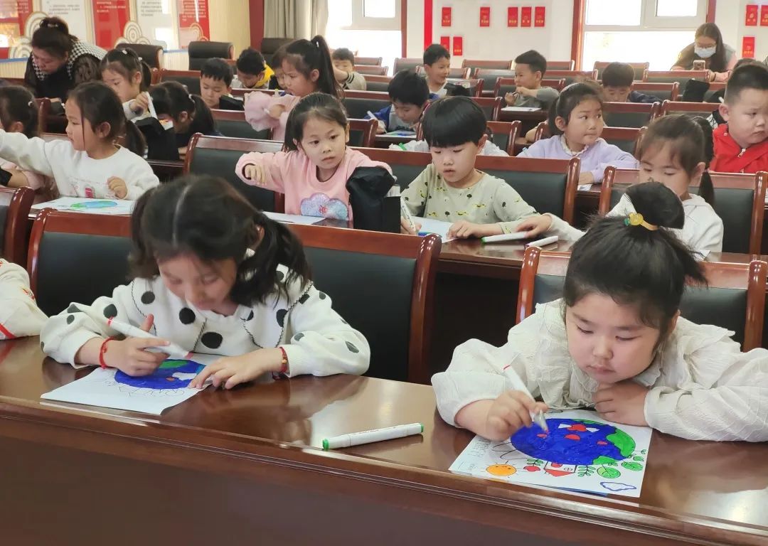 隨后,在志愿者的引導下孩子們在畫紙上繪畫,裝扮自己心中的地球家園。