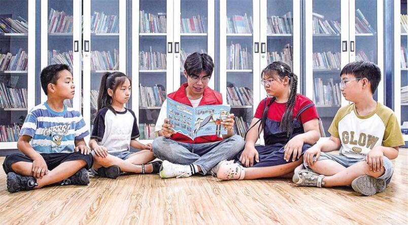 活動結束后,常駐暑期課堂的大學生志愿者李志衡,帶孩子們來到二樓農家書屋。在這里,從經典文學到科普讀物,從厚重歷史到瑰麗童話,書頁承載著無限遠方。
