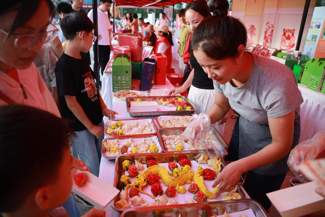 虎頭鞋、懷中抱子扇、面塑、書刻等非遺作品,讓市民感受到深厚的文化底蘊;特色農(nóng)產(chǎn)品王集鎮(zhèn)的花生、香腸、燒雞,雙溝鎮(zhèn)的鮮食玉米、無抗雞蛋、玉米須茶,沙集鎮(zhèn)的無花果、粉皮,金城街道的五閘香米、蓮子心,高作鎮(zhèn)的葡萄、姚集鎮(zhèn)的陳井粉絲、鹿茸菇等特產(chǎn)剛擺上,就被市民團團圍住,爭相挑選購買。“咱睢寧的好東西可真多,不管是吃的,還是這些精致的非遺產(chǎn)品,在家門口就能大飽眼福和口福,太方便啦。”市民王鑫說。