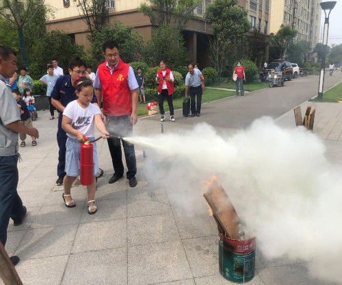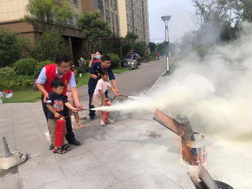 安全防范員現場演示了怎樣使用滅火器滅火以及實際操作注意事項,隨即邀請圍觀小朋友嘗試體驗。小朋友們個個熱情高漲、爭先恐后地使用滅火器進行滅火實操演練,鐵桶里的大火一次又一次被撲滅,孩子們神情凝重,流露出好奇心和責任感,周邊不時也會傳來掌聲。最后,濱河社區黨群服務中心工作者及安全防范員共同呼吁大家主動學習消防知識,關注消防,參與消防。