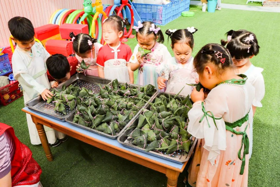 鼓樓區實驗幼兒園開展“濃情端午,粽葉飄香”迎端午活動,孩子們在老師的帶領下了解粽子的外形,認識粽葉、黏米等材料,學習包粽子的方法,經過努力,孩子們包出了自己獨一無二的粽子,學習端午傳統文化,感受中國文化的博大精深。