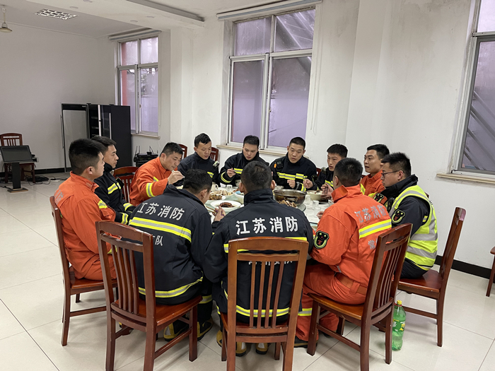 春節(jié)期間,站里給做飯的阿姨放了假,年夜飯是叫的外賣年菜,會燒飯的消防員再做上幾個拿手菜,一頓團圓飯就這樣開始了。