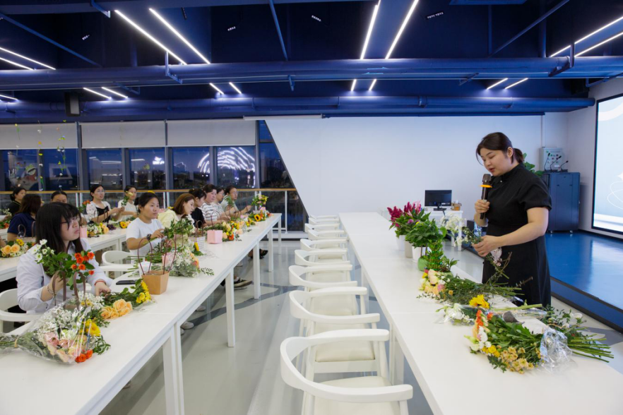 7月15日晚,20多位青年職工相聚羅溪鎮新時代文明實踐所,一堂插花課正在進行中。羅溪鎮搭建優質平臺為青年“充電續航”,讓流動的年輕人在成長過程中建立自我的歸宿,以青年夜校等形式切實服務引領更多職業青年,“溪星·家青年夜校”應運而生。除了插花課,還有短視頻剪輯、毛筆字、運動等課程,同時為青年職工的子女,開設閱讀分享、繪畫、舞蹈等課程。