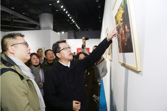 市委常委、宣傳部部長程政,市委宣傳部常務副部長、市文明辦主任薛建國,市文聯黨組書記吳海英,市文聯主席錢晴,市文體廣電和旅游局副局長李克雨,市文聯副主席周林海共同為2019第三屆江陰市攝影藝術展揭幕。