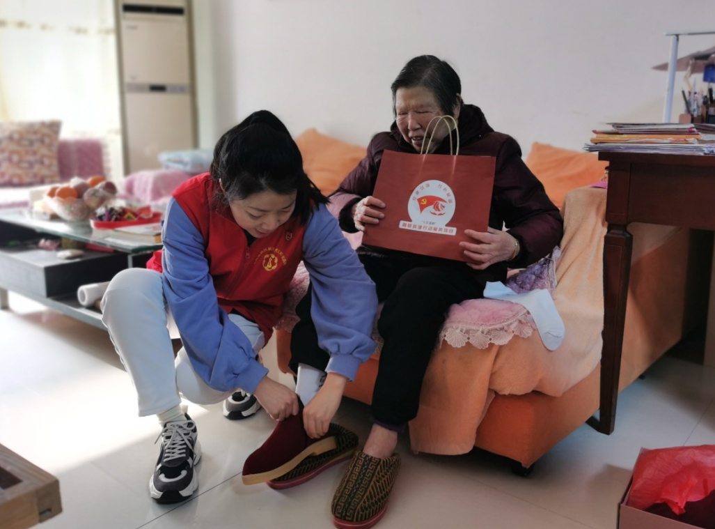 據了解,江陰“愛心棉鞋”志愿者隊伍成立于2019年12月,從最初的幾人壯大到如今的40余人。他們中,既有年過半百的退休職工,也有耄耋之年的先鋒黨員;既有時髦干練的阿婆,也有頭發花白的阿公。志愿者們用愛心一針一線縫制棉鞋,并將這些愛心棉鞋送到80歲以上老人和重殘困難戶家中。僅僅一年多時間,已累計送出棉鞋近2000雙,這些“高新”牌愛心棉鞋,讓老人們暖腳更暖心!