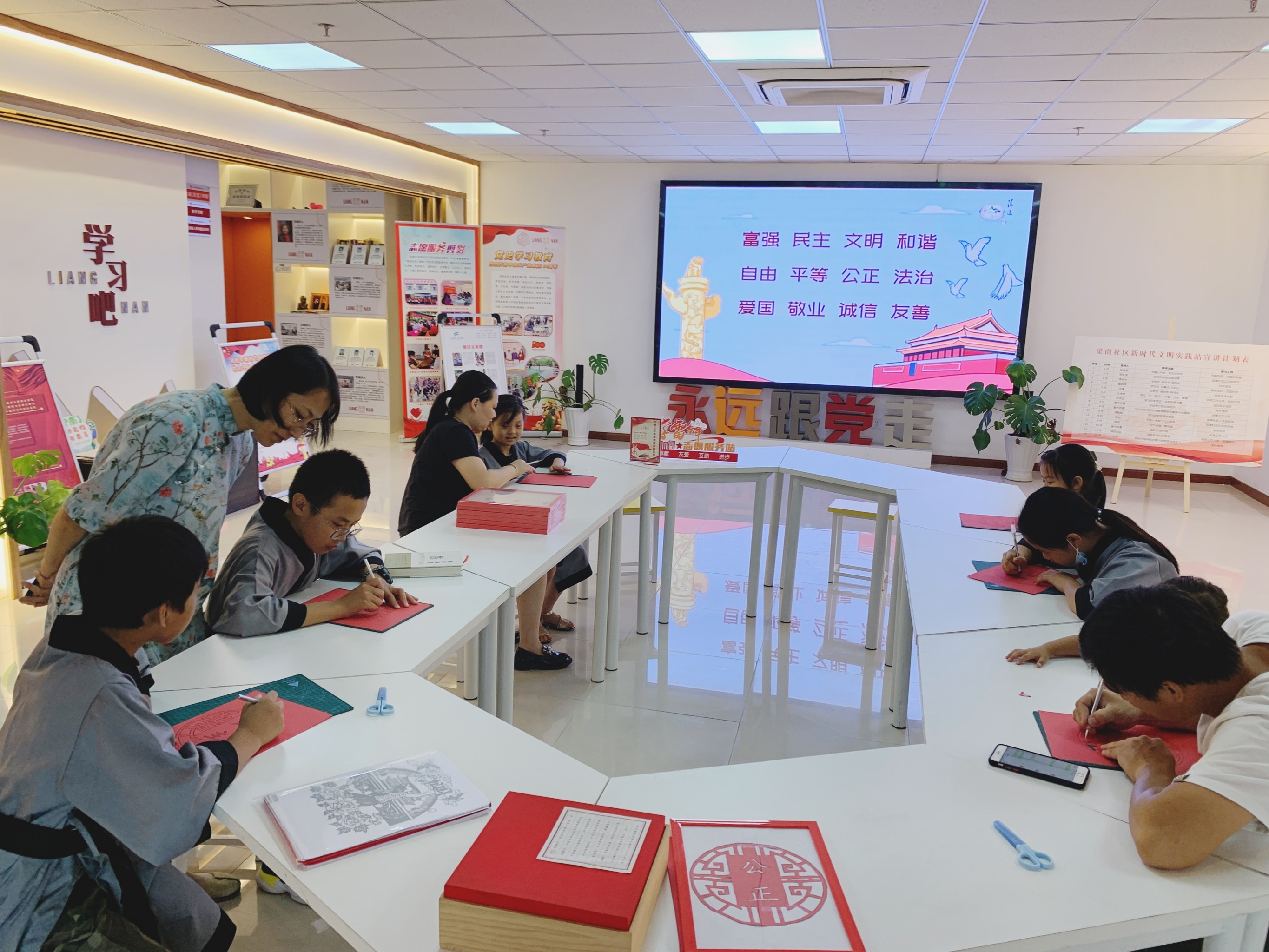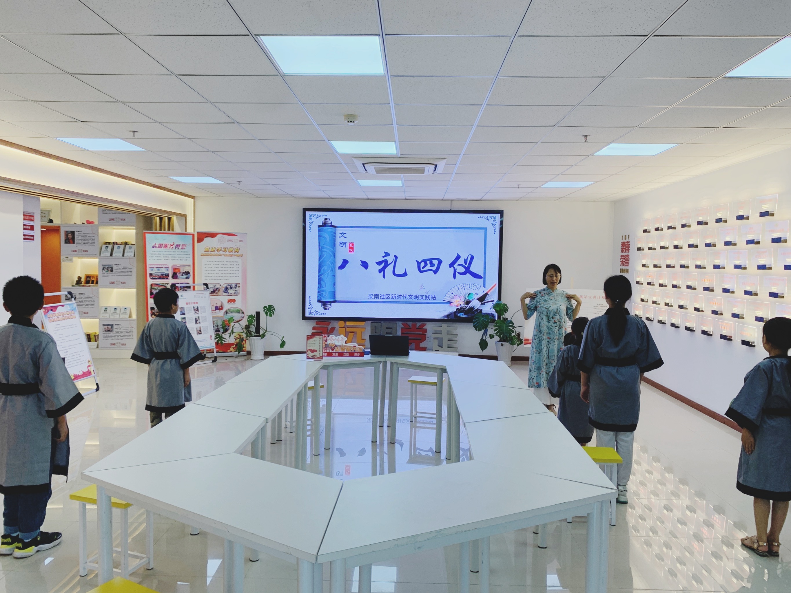 開(kāi)展文明禮儀養(yǎng)成教育是踐行立德樹(shù)人的重要抓手,作為無(wú)錫市首批未成年人文明禮儀養(yǎng)成教育實(shí)踐基地,梁南社區(qū)新時(shí)代文明實(shí)踐站發(fā)揮平臺(tái)作用,切實(shí)把社會(huì)主義核心價(jià)值體系融入未成年人成長(zhǎng)的全過(guò)程。社區(qū)積極對(duì)接專業(yè)的公益組織,發(fā)揮“五老”人員作用,打造適合青少年的各項(xiàng)活動(dòng),并通過(guò)“學(xué)習(xí)強(qiáng)國(guó)”學(xué)習(xí)平臺(tái)線下體驗(yàn)點(diǎn)、微信公眾號(hào)等平臺(tái),豐富教育載體,助推青少年素質(zhì)教育長(zhǎng)效落實(shí)。