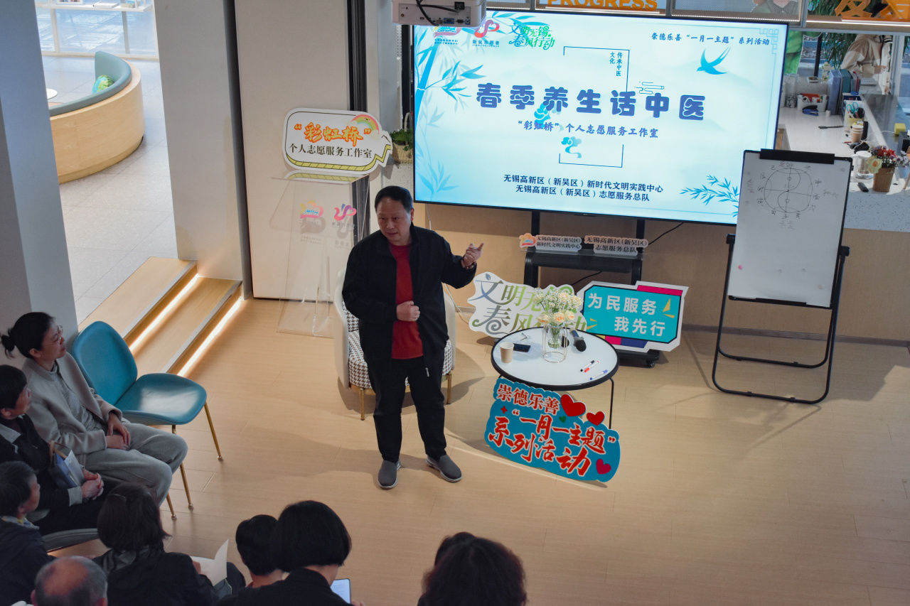 無錫高新區(qū)(新吳區(qū))新時(shí)代文明實(shí)踐中心開展“春季養(yǎng)生話中醫(yī)”春日養(yǎng)生局,管華盈“彩虹橋”個人志愿服務(wù)工作室主理人管華盈為居民講解春日內(nèi)外療休之道,教授衣食住行方面的春季養(yǎng)生小妙招,讓大家在一派融融春光里調(diào)理身心,感受中醫(yī)文化的魅力。