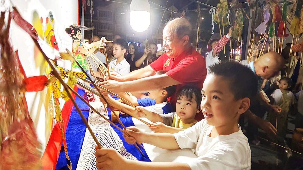千年非遺訴說著家國情懷,為雙節添彩。利港公園廣場上,“非遺瑰寶 傳承經典”皮影戲專場《孫悟空大戰牛魔王》《三打白骨精》等經典劇目輪番上演,光影交錯間贏得觀眾陣陣喝彩。演出后,觀眾在傳承人指導下親手體驗皮影操作,感受非遺魅力。