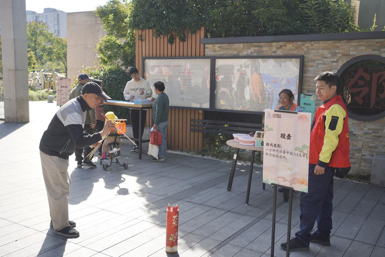 便民服務(wù)暖人心,趣味運(yùn)動(dòng)更添活力。廣場(chǎng)另一側(cè),老年人趣味運(yùn)動(dòng)會(huì)人潮涌動(dòng)。考慮到老年人的身體特點(diǎn),社區(qū)精心設(shè)計(jì)了投沙包、投壺、夾乒乓球、轉(zhuǎn)呼啦圈等7個(gè)低強(qiáng)度、高趣味的項(xiàng)目,既有競(jìng)技性,又不失娛樂(lè)性。比賽現(xiàn)場(chǎng),老人們熱情高漲,紛紛踴躍報(bào)名參與,以“通關(guān)打卡”形式領(lǐng)取心儀小獎(jiǎng)品,整個(gè)廣場(chǎng)充滿(mǎn)了歡聲笑語(yǔ)。家住遠(yuǎn)洋小區(qū)的吳阿姨拿著獲得的小禮品,難掩喜悅之情,她表示:“平時(shí)在家總覺(jué)得悶,今天和老鄰居們一起玩游戲、拿獎(jiǎng)品,感覺(jué)自己年輕了好幾歲!”