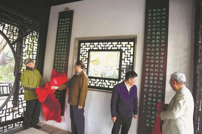 10月26日,南通市楹聯(lián)學(xué)會(huì)與五山建設(shè)管理公司共同在軍山景區(qū)的“恒河決注”亭里舉行《詠軍山》楹聯(lián)懸掛儀式。至此游客朋友們,可以一邊傾聽(tīng)潺潺飛瀑聲,一邊駐足欣賞江海第一長(zhǎng)聯(lián)。