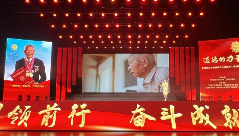 崇川區全國道德模范提名獎獲得者、中國好人吳錦泉,憑磨刀手藝為街坊鄰居服務,2008年以來,他幾乎將所有磨刀得來的收入及各類慰問金都捐了出去,捐贈金額26萬余元,而他自己,卻住著三間瓦房,過著最簡樸的生活。當晚,他的事跡也被編排成了文藝節目,以《巷子里的磨刀聲》事跡講述的方式,呈現給了觀眾。