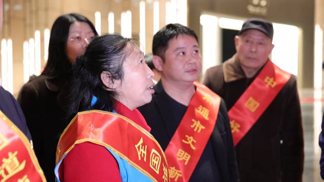 晚上6點不到,不少觀眾就來到南通大劇院。他們在印有江蘇的全國道德模范、中國好人事跡介紹的展板前駐足觀看,仔細閱讀。不少人還在熟悉的南通本地典型人物展板前拍照打卡,分享到朋友圈。