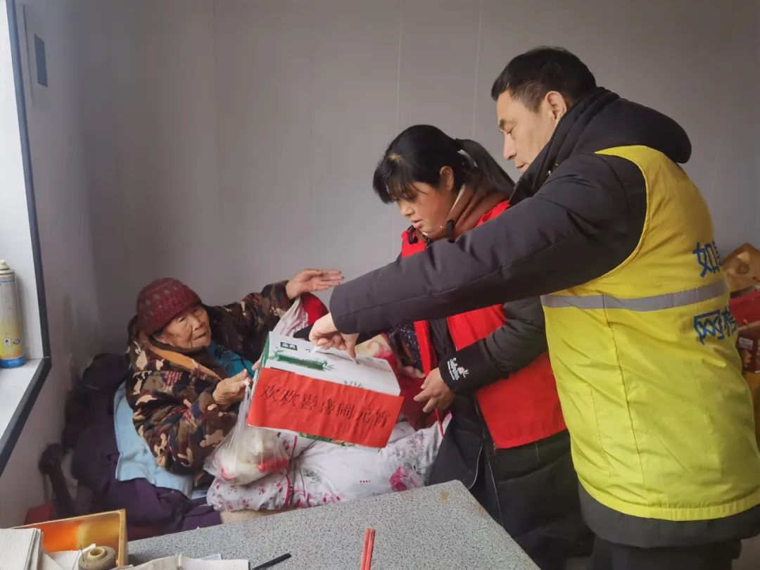 城南街道育華村新時代文明實踐站的志愿者給村內獨居老人及困難退役軍人送去元宵節慰問品。
