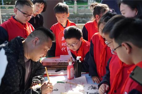 南通崇川區新時代文明實踐中心在濠河五亭開展書法繪畫的互動表演,讓人們感受傳統文化的和諧韻律之美。
