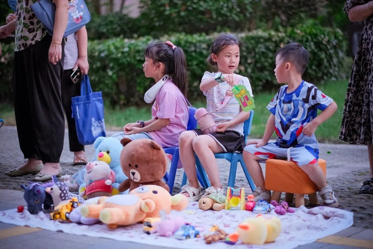 “走過路過,千萬不要錯過”“毛絨公仔買二送一嘍”……英雄不論出處,擺攤不論年齡。“小攤主”們賣力吆喝,招攬“生意”,忙得不亦樂乎。小小攤位上擺放著各種玩具公仔、兒童書籍、學習用品、手工制品等商品,儼然形成了一個微型“淘寶”市場。“雖然都生活在一個小區里,但平時大家互不相識,這次的市集活動讓大家彼此熟悉,也鍛煉了孩子的人際交往和社會實踐能力。”攤主楊晶雅媽媽說。在“舊物新生”攤位上,一件件充滿故事與回憶的閑置物品找到了新主人。“你的多余,正是我的需要。”居民李女士手拿著剛“淘”到的小物件,開心地說道。
